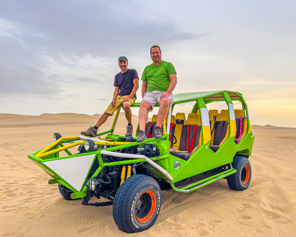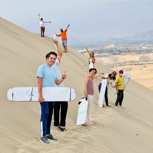 Finalmente arribo al Oasis de la Huacachina, el cual se encuentra a tan solo 5km del centro de la ciudad de Ica. En esta hermosa laguna, los visitantes pueden disfrutar de la tranquilidad del lugar, pasear en busca de buenas fotos y practicar deportes de aventura como Buggies y Sanboarding.